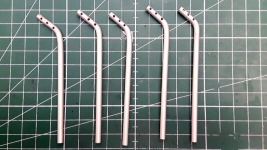Für den Fangzaun verwendete ich 4 mm starke Alustangen, die in ca.10cm lange Stücke geschnitten und entgratet wurden.