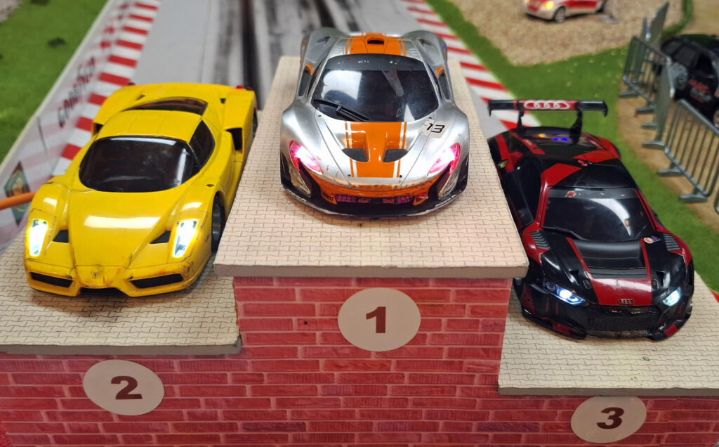 Im letzten Rennen war nochmals knisternde Spannung zwischen Stefan und Rainer angesagt. Beide abermals 96 Runden, blieb Rainer der heutige Verlierer, obwohl der Abstand ein Augenzwinkern von unglaublichen kaum messbaren 0,007sec. betrug. Adrenalin pur.